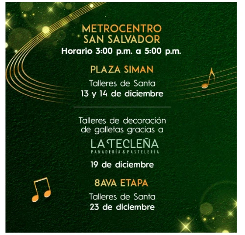 Más allá de los talleres, Metrocentro San Salvador ofrece un ambiente perfecto para caminar, explorar y disfrutar eventos temáticos que incluyen la visita de Santa Claus, talleres navideños y áreas decoradas con luces y figuras alusivas que crean un ambiente cálido.